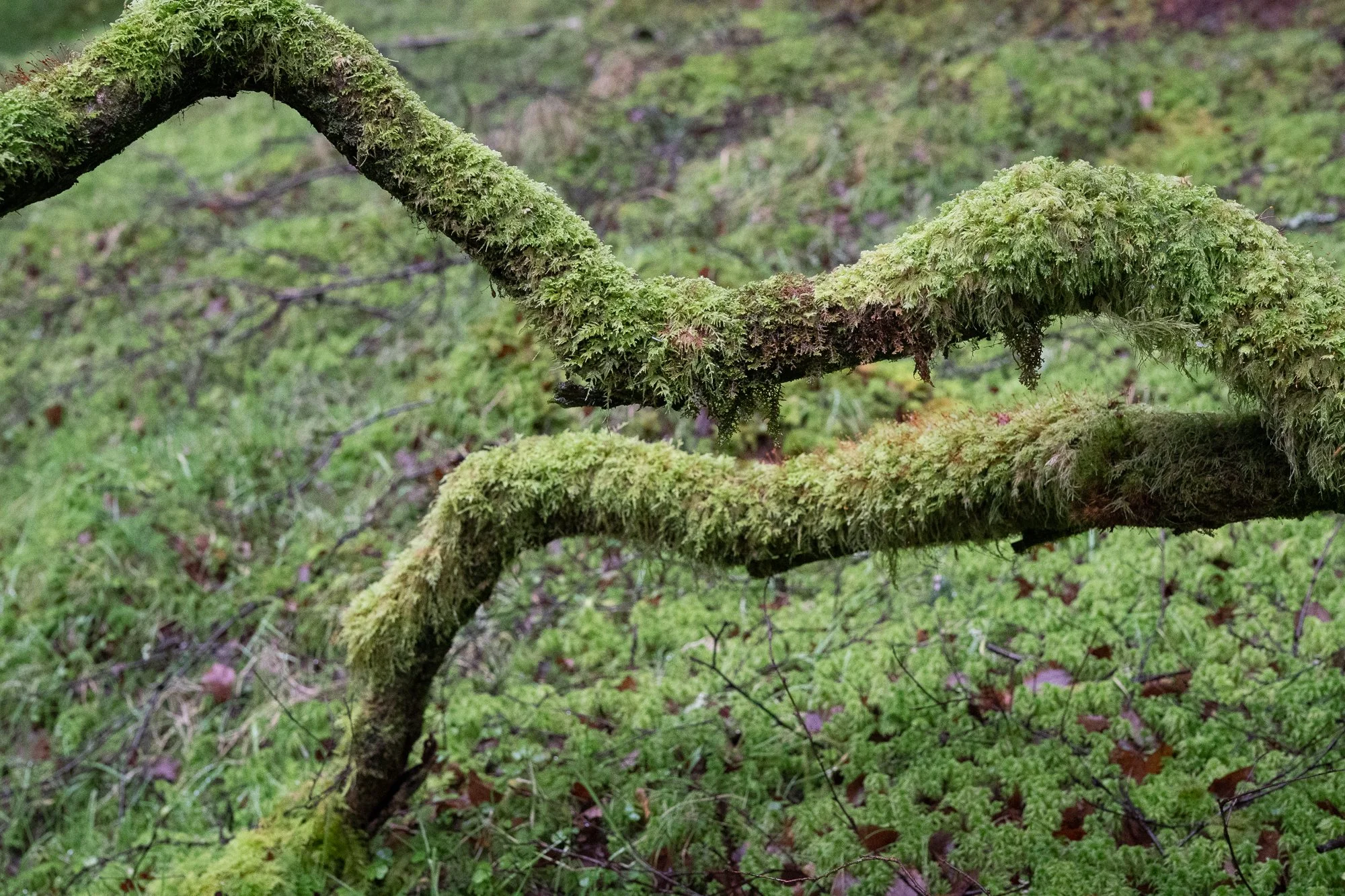 A close study of moss and branch — a quieter, intimate portrait of the Scottish Highlands landscape rendered in fine art detail.