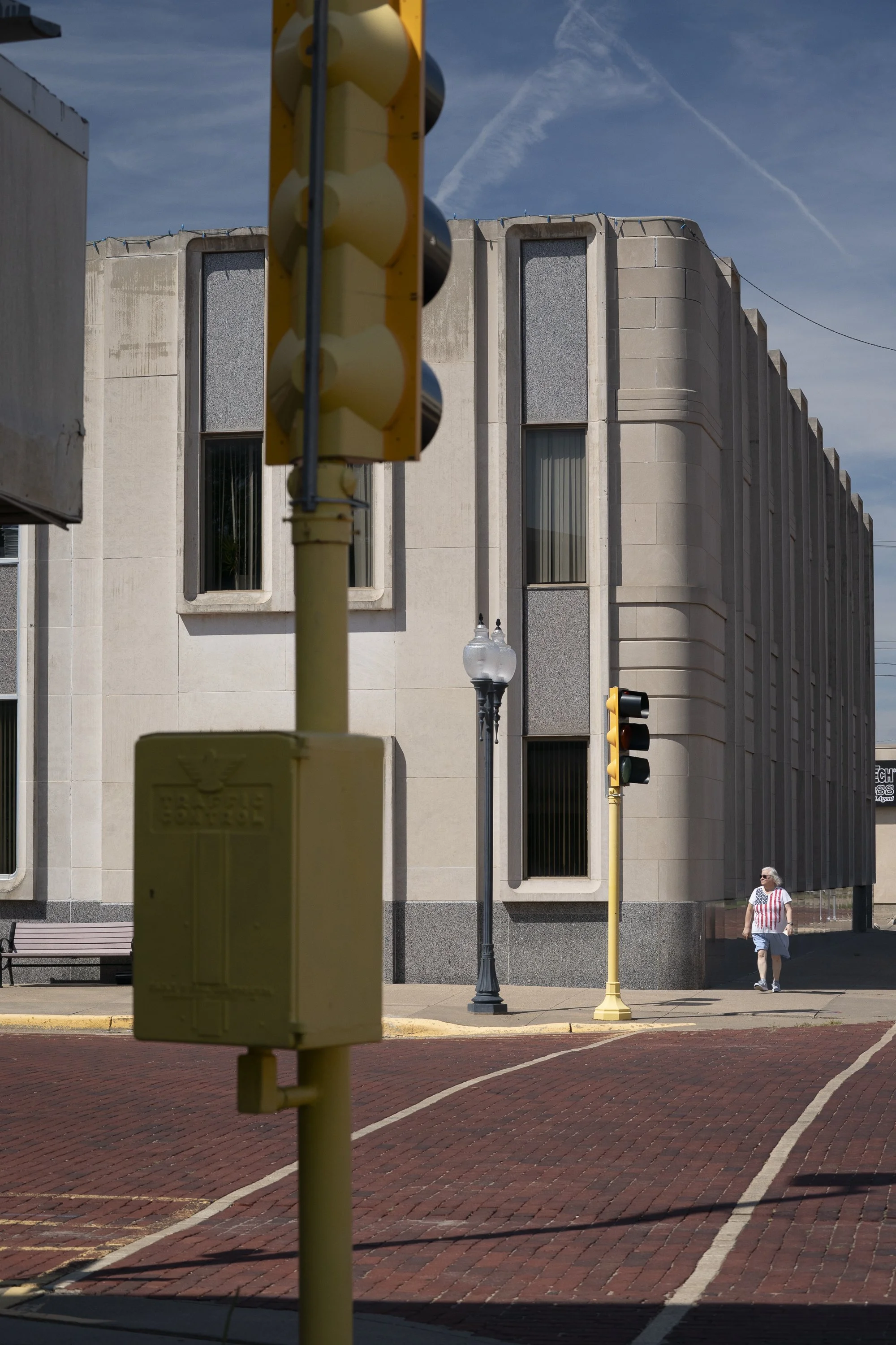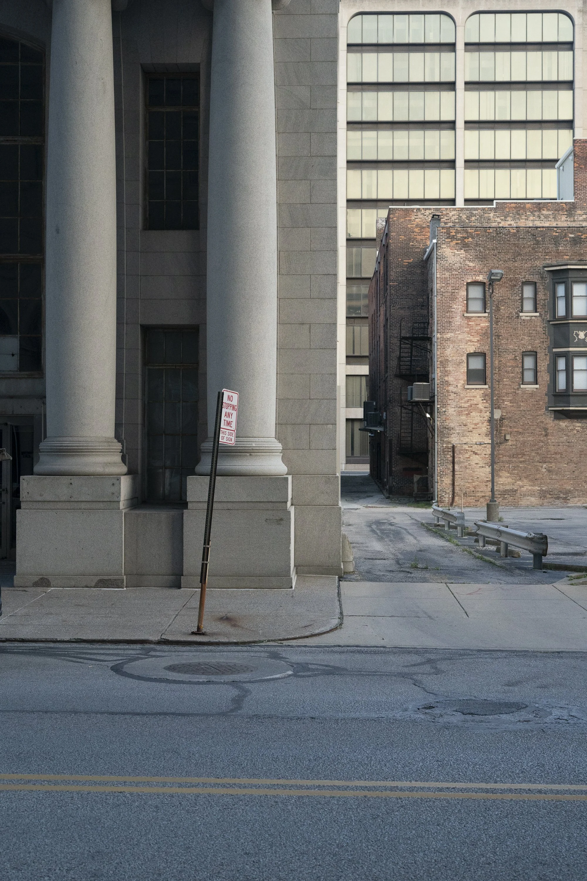 The intersection of grand architecture and back-alley grit in a Midwestern city