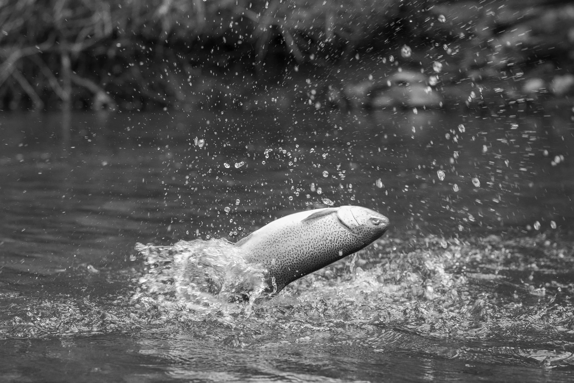 Rainbow trout jumping out of the river